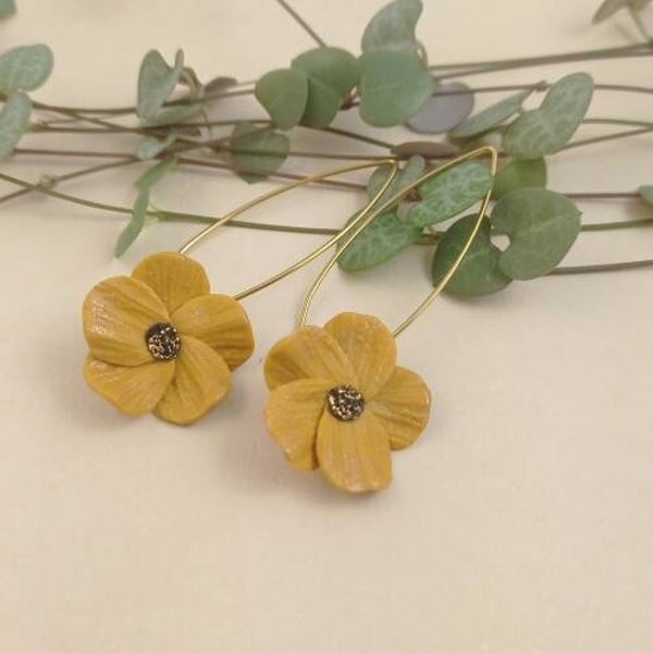 Les boucles d'oreilles sont uniques, le positionnement ainsi que la fleur peuvent être légèrements différents pour chaque pièce.